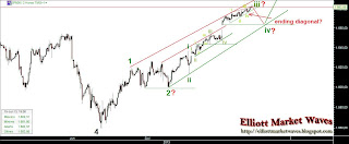 I still following the same two counts. The decision is close and the movement will be furious. Personally I prefer the bearish count. So let's see what will happen with the ending diagonal. Good trades to all.