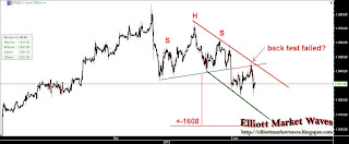 At short term the waves are (still) unclear but the downtrend is still undeway and the H&S projection is still valid. So, at this point the odds suggest new lows. Good trades to all.